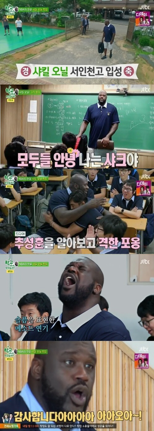 15일 방송된 JTBC '학교 다녀오겠습니다'에서는 NBA의 전설적인 스타 샤킬 오닐이 서인천 고등학교로 등교해 한국 고등학교를 체험하는 모습이 그려졌다. 키 216cm의 거구 샤킬 오닐은 등장부터 모두의 이목의 집중시켰다. 남다른 덩치에 놀라워하는 학생들을 향해 그는 먼저 주먹을 내밀며 인사를 건내며 다정다감한 모습을 보여줬다.