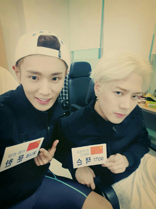 갓세븐(GOT7)의 멤버 잭슨과 찍은 또 다른 사진에선 스냅백을 거꾸로 쓴 채로 개구쟁이 같은 매력을 발산하고 있다. 이 사진에서 문한은 '리틀 쑨양'이라는 명찰을, 잭슨은 '국가대표 체육인'이라는 명찰을 달고 있다.