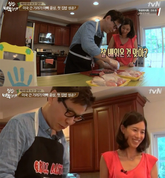 윤상은 15일 방송된 tvN 예능 '집밥 백선생'에서 미국 뉴저지에서 생활 중인 아내와 아이들을 위해 첫 집밥 요리에 도전했다.