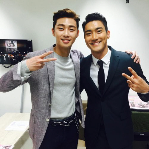 공개된 사진은 박서준과 최시원이 함께 찍은 인증샷. 사진 속 두 사람은 다정하게 어깨동무를 한 채 브이(V)자를 그리고 있다.