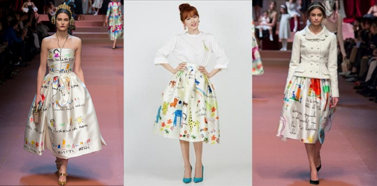 당시의 돌체앤가바나 여성복 컬렉션의 주제는 '엄마'였다. 이 중 3명의 모델이 실제 그들의 자녀와 런웨이를 걸었을 정도로, 아이와 엄마간의 유대 관계를 모티브로 한 컬렉션이다. 주제도 비슷할 뿐 아니라 아이가 그렸을 법한 컬러풀한 낙서와 글자패턴, 광택이 나는 비슷한 소재와 풍성한 실루엣 등이 비슷하다는 지적이 있다. 이와 관련, 돌체앤가바나의 국내 홍보를 담당하고 있는 신세계 인터내셔널 측은 16일 오후 스포츠조선에 "저희 측에서 직접 디자인을 하는게 아니라 돌체앤가바나의 의상을 수입하고 판매만 하는 것이므로 이 사태와 관련한 디자인이나 저작권 등의 문제를 말할 수 있는 입장이 아니다. 디자이너에게 확인이 필요한 부분이다"라며 조심스러운 입장을 전해왔다. 돌체앤가바나 측이 윤은혜나 '여신의 패션' 측에 정식으로 항의를 할지 여부는 미지수. 이와 관련, 윤은혜 소속사 측은 "아이들 그림 자체가 명백히 다르고, 그런류의 프린트가 현재 트렌드이기도 하다"라고 해명한 바 있다. 그러나 한 패션계 관계자는 "윤은혜 측이 트렌드라고 주장하는 해당 프린트는 단 한 번도 트렌드였던 적이 없었다. 트렌드를 잘 알지도 못하면서 트렌드를 방패 삼아 피해가려는 것이 괘씸하다"라며 윤은혜의 해명이 설득력이 없다고 했다.