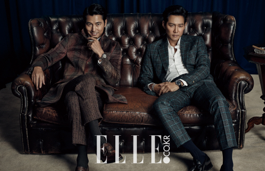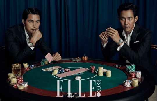 17일 공개된 패션지 '엘르(ELLE)' 10월호 화보에서 정우성과 이정재는 겜블러로 변신해 치명적인 매력을 발산했다.