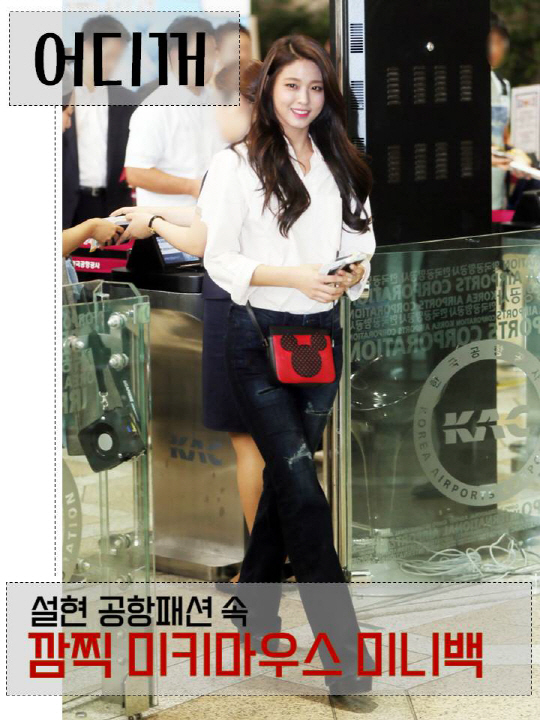 [어디꺼] 설현 공항패션 속 깜찍 미키마우스 미니백?