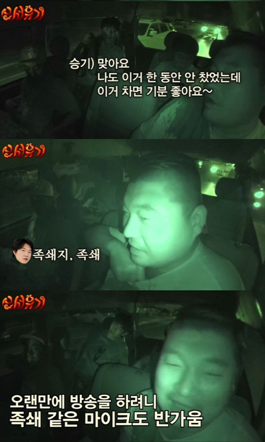 그러자 뒤에 있던 이수근은 "너무 좋습니다"며 공백기 동안 방송이 그리웠음을 드러냈다. 옆에 있던 이승기 역시 "맞아. 나도 이거 한 동안 안 찼는데, 차면 기분이 좋아요. 뭔가 일하는 기분이 좋다"고 덧붙여 이목을 끌었다.
