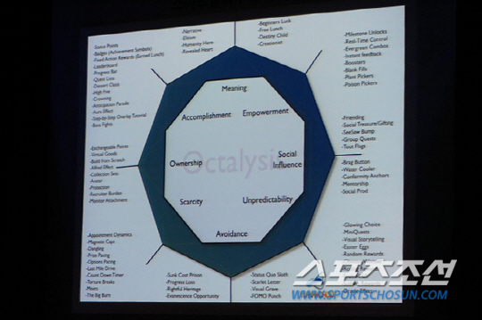그가 주장하는 핵심은 게임적인 요소를 무조건 실생활에 적용한다고 해서 게이미피케이션이 될 수 없다는 것이다. 게임도 재미있는 게임과 재미없는 게임이 있듯이 핵심 요소에 맞춤 전략으로 다가가야지만 성공적인 게이미피케이션이 될 수 있다고 설명했다.