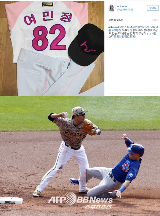 앞서 강정호와의 친분을 과시한 적 있는 여민정은 올시즌 초 메이저리그에 영입된 강정호를 위한 응원랩 '내 벗, Never Give Up'을 공개한 바 있다.
