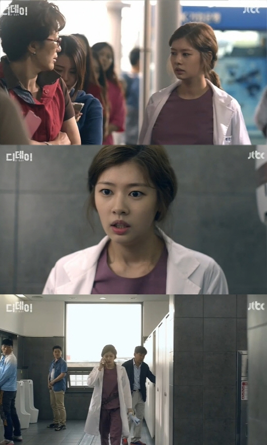 18일 첫 방송된 JTBC 금토드라마 '디데이' 1회(극본 황은경/연출 장용우)에서 정똘미(정소민 분)가 급하게 화장실을 찾는 장면이 그려졌다.
