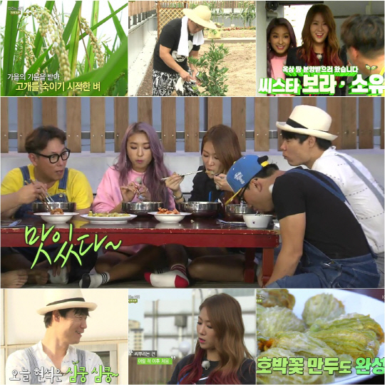18일 방송된 KBS2 '인간의 조건-도시농부'에서는 씨스타의 소유와 보라가 특급 먹방을 선보였다. 소유와 보라는 이날 방송에서 당근 씨를 뿌리고 꽃을 심는 등 도시농부들을 도와 땀을 흘렸다. 이에 최현석은 땀 흘려 일한 소유와 보라를 위해 까마중 칼국수와 호박꽃 만두를 만들었다. 소유와 보라는 다이어트 중임에도 젓가락질을 멈추지 못할 정도로 흡입했다. 녹화 이후 화보 촬영까지 있었는데도 폭풍 먹방을 선보인 것.