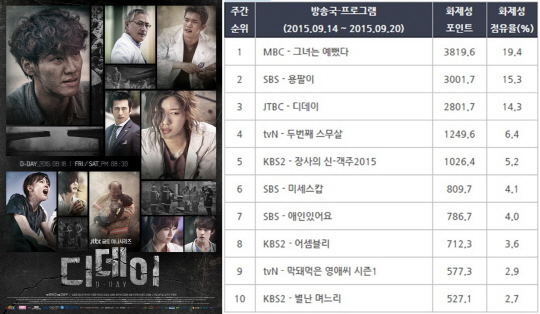 [스포츠조선 이승미 기자]JTBC 금토극 '디데이'가 첫 방송부터 온라인을 뜨겁게 달구며, 온라인 화제성 3위에 등극해 기대감을 높이고 있다.