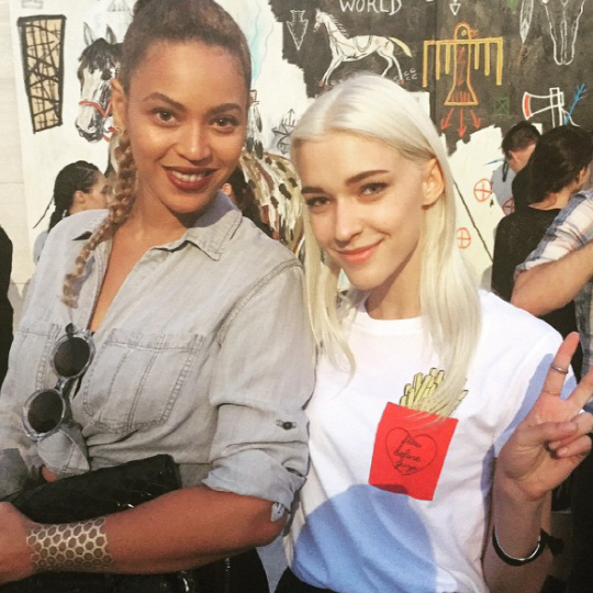 사진에서 스테파니 미초바는 비욘세와 다정하게 서서 포즈를 취한 모습. 비욘세의 섹시한 매력과 스테파니 미초바의 상큼한 자태가 시선을 끈다.