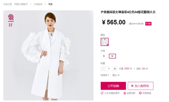스포츠조선은 지난 18일과 22일, 23일 밍싱이추 측에 전화를 걸어 "'여신의 패션'을 통해 윤은혜 옷을 낙찰한 것으로 아는데, 현재까지 얼마나 팔렸으며 윤은혜와 지분을 어떻게 나누고 있는지를 알고 싶다"라며 인터뷰를 요청하자 "책임자와 연락을 한 뒤, 답을 주겠다"고 했지만 이후 연락은 오지 않았다. 재차 전화를 걸어 연락을 하니 "답할 권한이 없고 잘 모른다. 책임자가 아는 부분이다"라며 "책임자가 현재 자리에 없다"라는 답만 들을 수 있었다.
