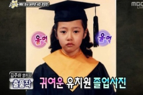 공개된 사진 속의 김주하는 학사모와 졸업 가운을 입은 상태로 정면을 응시하고 있다.