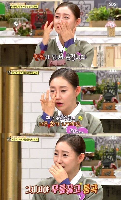 이날 박규리는 "결혼 5년 차 정도 때 레슨과 강의를 하면서 바쁜 삶을 살았다"며 "눈이 침침하고 헛구역질이 나는 등 몸에 이상반응이 와서 남편에게 연락하니 '일하고 있으니 약 먹고 자라'고 하더라"고 당시를 떠올렸다.
