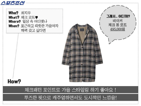 #어디꺼 #스포츠조선 #두번째스무살 #최지우 #코트 #변함없이_청초한_그녀의_체크코트 #가을캠퍼스코트 #비이커