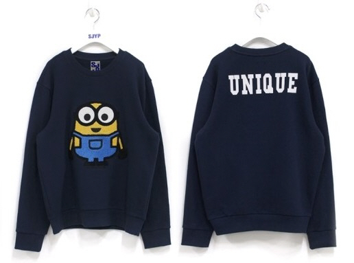 티파니의 미니언즈 맨투맨 소녀들과 즐거운 한 때를 보내고 있는 티파니의 맨투맨에는 깜찍한 미니언 캐릭터가 그려져 있네요. 보기만 해도 기분 좋아지는 미니언즈의 눈동자가 재미있어요. 그 뿐 아니라 짙은 네이비 색감에서 스타일리시한 감성까지 전해집니다. 뒷면의 화이트 레터링 디테일이 숨어있는 또 하나의 깜짝 포인트! SJYP의 제품입니다.