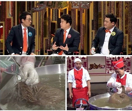 백종원은 이날 3색 칼국수인 만큼 지역마다 각기 다른 육수에 대해 분석하며 "육수를 낼 때 사용하는 무, 양파, 대파는 비슷하지만, 그 외 육수 맛을 내는 재료는 다르다"며 각 명인들마다 주목 되는 육수 재료가 있음을 강조했다.