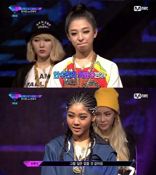트루디와 안수민은 미션 연습 중에도 은근한 신경전을 펼쳤다. 트루디는 아이돌 디스랩을 원했고, 미션 준비하면서 "난 천재인 거 같다"며 자신감을 드러냈다.