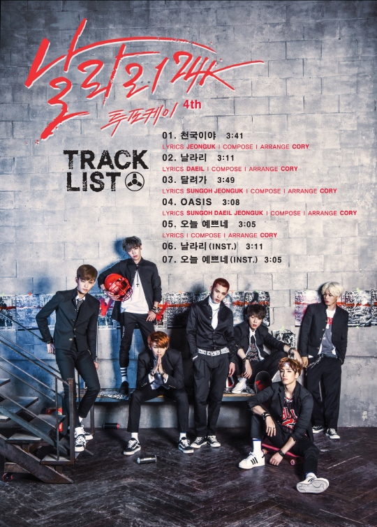 격렬한 클럽 난투극 장면을 담은 트레일러 영상으로 컴백 전부터 가요계을 떠들썩하게 만들었던 아이돌 그룹 투포케이(24K)가 4집 앨범에 수록될 트랙리스트와 이번 앨범의 콘셉트인 '날라리' 의상 사진을 25일 처음으로 공개했다.