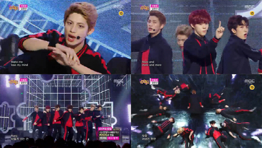 신예 업텐션(UP10TION 진후, 쿤, 고결, 웨이, 비토, 우신, 선율, 규진, 환희, 샤오)이 패기 넘치는 에너지로 음악중심 무대를 가득 채웠다.
