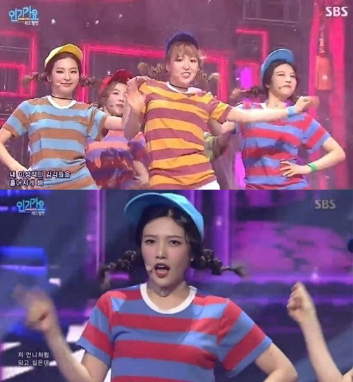 이날 레드벨벳은 줄무늬 티셔츠와 하얀색 짧은 반바지를 입고 무대에 올랐다. 특히 양 갈래로 땋은 삐삐머리와 발랄한 안무는 레드벨벳의 상큼한 매력을 돋보이게 했다.