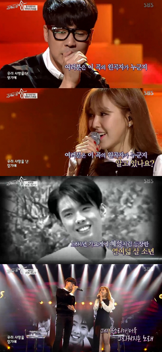 노래와 함께 원곡자가 등장할 순서에 서지원의 생전 밝은 모습이 영상으로 공개돼 보는 이들의 눈물샘을 자극했다.