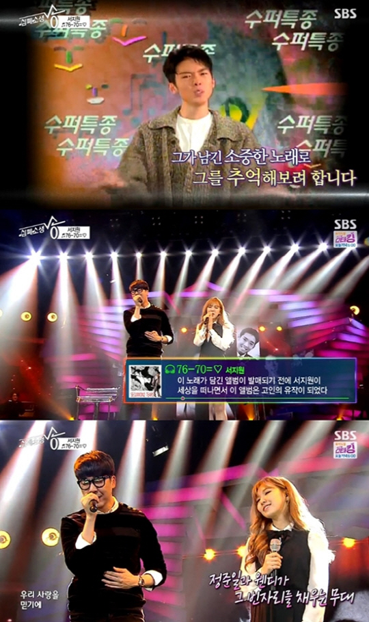 이날 작곡가 박선주가 영상으로 의뢰하고 감성 발라더 정준일과 레드벨뱃의 웬디가 부른 이 노래는 96년 서지원이 세상을 떠나기전 남긴 유작.