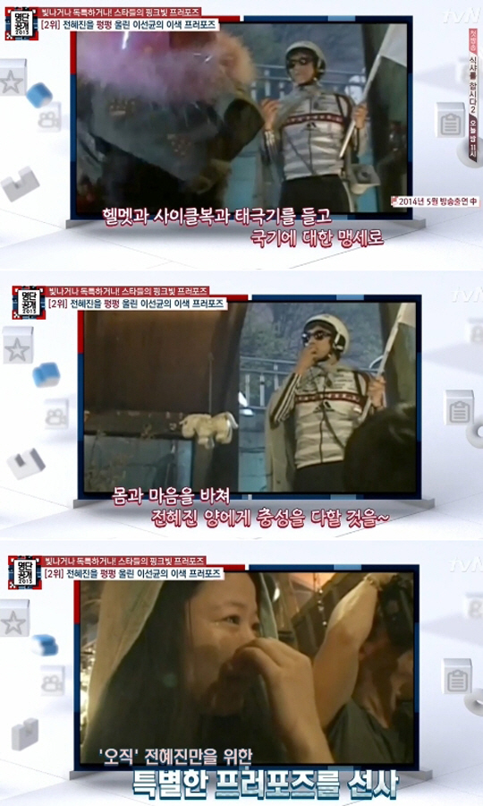 이선균은 헬멧과 사이클복 차림에 태극기를 들고 '국기에 대한 맹세'를 전혜진에 대한 충성 맹세로 바꿔 프러포즈에 나섰다. 결국 이선균과 전혜진은 2009년 5월 화촉을 밝혔다.