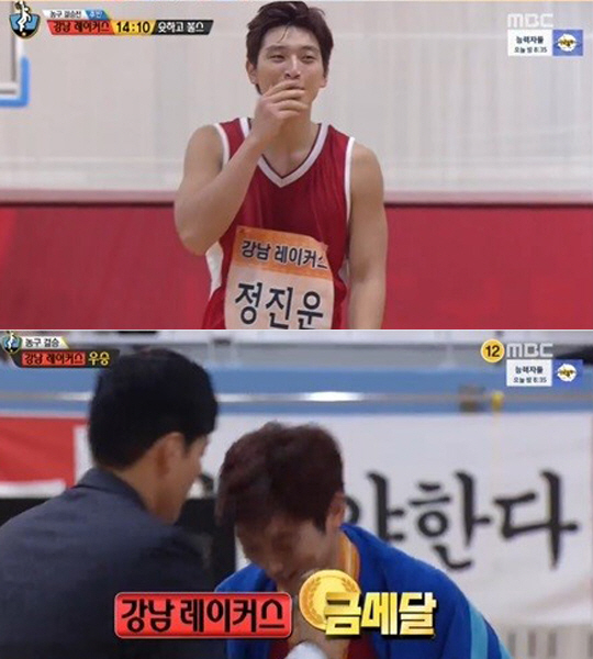 29일 MBC 추석 특집 '2015 아이돌스타 육상·씨름·농구·풋살·양궁 선수권대회(아육대) 2부'에서 정진운이 이끄는 강남 레이커스는 슛하고 불스와의 결승전에서 완승, 지난 대회에 이어 2연속 우승을 차지했다.