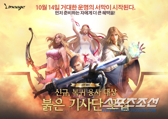 엔씨소프트는 '리니지'에서 '시즌4 부활의 문' 업데이트에 앞서 30일부터 사전예약 프로모션 '붉은 기사단 모집'을 진행한다.