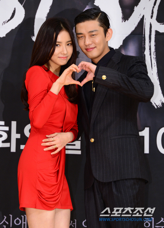 9월 30일 서울 목동 SBS사옥에서 SBS 창사 25주년 특별기획 드라마 '육룡이 나르샤' 제작발표회가 열렸다. 오는 10월 5일 첫 방송될 '육룡이 나르샤'는 조선의 기틀을 세운 철혈 군주 이방원을 중심으로 한 여섯 인물의 화끈한 성공 스토리를 다룬 사극이다. 제작발표회 무대에서 포즈를 취하고 있는 신세경과 유아인. 목동=송정헌 기자 songs@sportschosun.com/2015.09.30