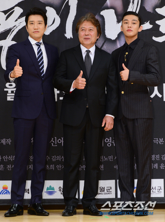 제작발표회 무대에서 포즈를 취하고 있는 김명민, 천호진, 유아인. 목동=송정헌 기자 songs@sportschosun.com/2015.09.30