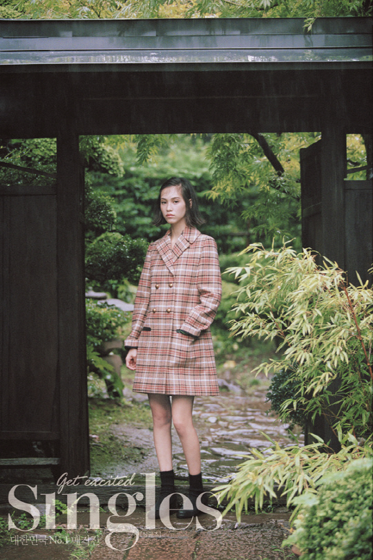 또 다른 화보에서는 체크패턴이 돋보이는 자켓으로 세련된 소녀룩을 연출했으며, 버건디 컬러의 타이 블라우스와 스커트를 활용해 여성스러운 스타일을 선보였다.