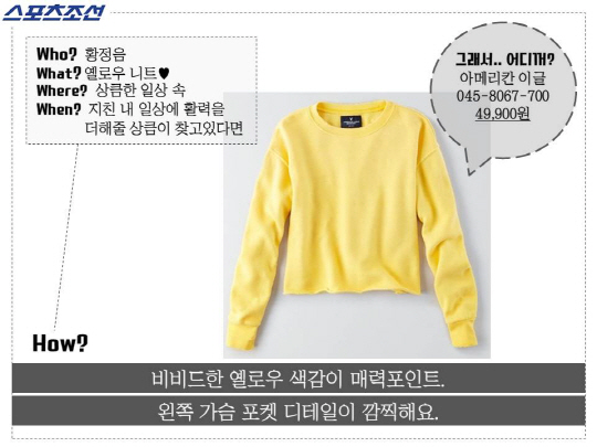 #어디꺼 #스포츠조선 #그녀는예뻤다 #황정음 #니트 #햇빛받아_더욱_화사한_정음언니의_옐로우니트 #아메리칸이글
