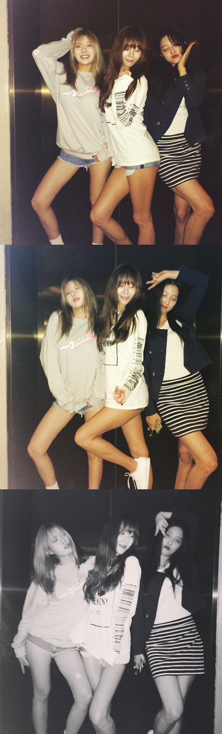 사진 속 현아와 남지현 지나는 엘리베이터 앞에서 마치 화보 촬영을 하듯 한껏 포즈를 취한 모습. 핫팬츠와 짧은 치마로 늘씬한 각선미를 뽐낸 세 사람은 몸매 라인을 강조하는 포즈를 취하며 섹시한 매력을 발산했다.