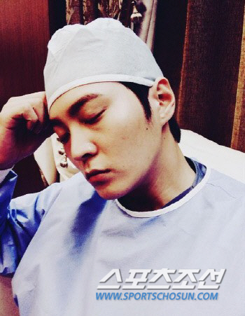 공개한 사진에는 수술복을 입은 주원이 눈을 감은 채 피곤한 모습이다.