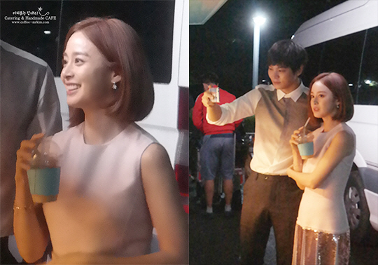 사진 속 김태희는 뽀얀 피부와 어울리는 핑크색 원피스를 입고 여신 미모를 뽐냈다. 김태희는 팬들의 정성에 감동한 듯 행복한 미소를 짓고 있다. 이 밖에도 김태희와 주원이 함께 'V앱' 촬영을 하는 등 즐거운 현장 분위기가 사진에 고스란히 드러나 훈훈함을 자아낸다.