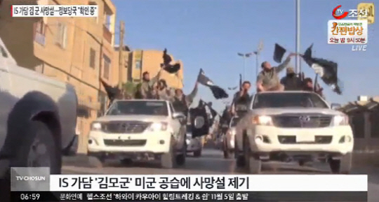 한 언론매체는 지난달 30일 정보당국 및 중동 현지소식통을 인용해 "9월 23일 미국과 요르단 연합군이 시리아 북부 IS 근거지인 라카 일대에 대한 공습을 단행했다"며 "공격 대상에는 IS 분파 내 김군이 몸담고 있던 외국인 부대도 포함됐다"고 전했다. 이어 200여명의 외국인 부대 가운데 80여명이 공습으로 사망했다면서 김군 사망 가능성을 제기했다.