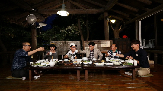 본격적인 회식에 앞서, "이 회식의 주최자는 나"라는 최고 연장자 송해를 필두로 출연자들은 돌아가며 건배사를 외쳤다. 어디로 튈지 모르는 조영남과 김수미의 엉뚱하고도 기발한 건배사는 물론, 이경규까지 합세해 시작부터 회식 분위기를 후끈 달아오르게 했다. 조영남과 김수미가 최고 연장자 송해 앞에서 사고(?)를 일으키지는 않을까, 회식 내내 긴장을 늦추지 못하는 매니저 이경규와 박명수의 모습은 모두를 폭소케 했다는 후문.