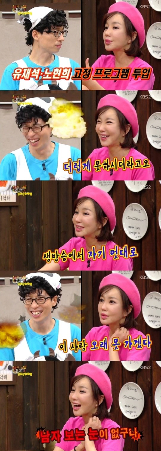 이날 노현희는 "유재석이 신인이던 시절 파트너가 돼서 고정 프로를 했다"고 과거 에피소드를 들려줬다.