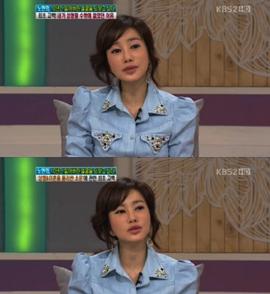 당시 노현희는 "이혼을 하고 기자 분들이 물으면 절대로 결혼생활 이야기를 안 했다. 피하기만 했는데 이제는 시간도 지났고 연기하는 나를 보여주고 싶다"며 말문을 열었다.