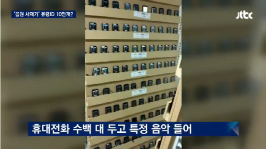 | JTBC가 21일 보도한 국내 한 기획사가 음원 조작 브로커에게 입수했다는 사진. 사진캡처=JTBC |
