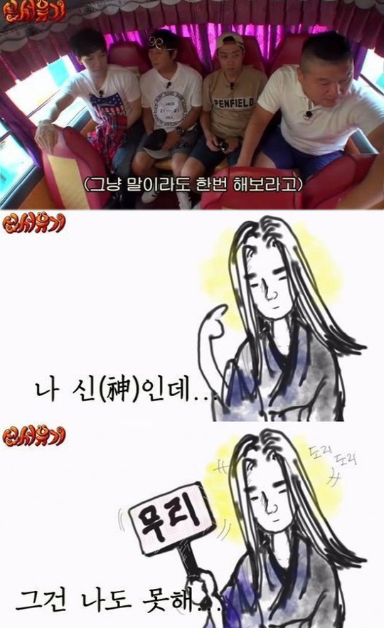 특히 제작진은 이수근의 소원을 들은 뒤 "나 신인데 무리"라는 그림 화면을 삽입해 웃음을 유발했다.