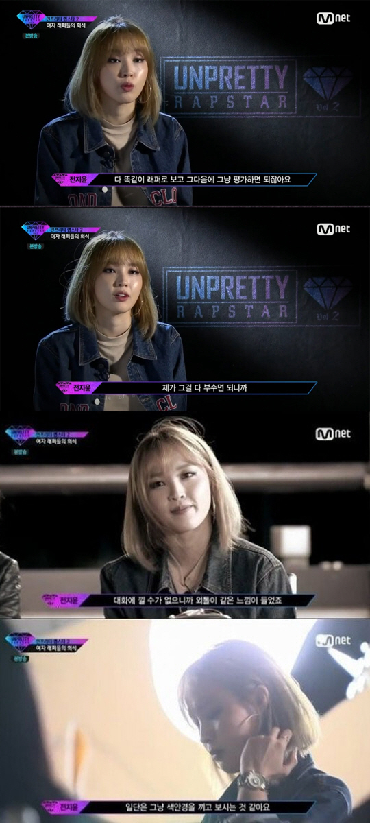 전지윤은 2일 언프리티랩스타 시즌2 4화에 출연, 효린 수아 헤이즈 캐스퍼 길미 예지 키디비 유빈 트루디와 합류했다.