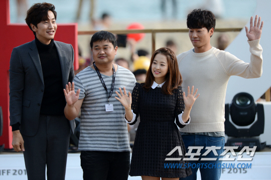 배우 이천희 박보영 이광수와 권오광 감독이 3일 부산 해운대 비프빌리지에서 진행된 영화 '돌연변이' 스페셜 무대인사에 참석해 인사를 하고 있다. 영화