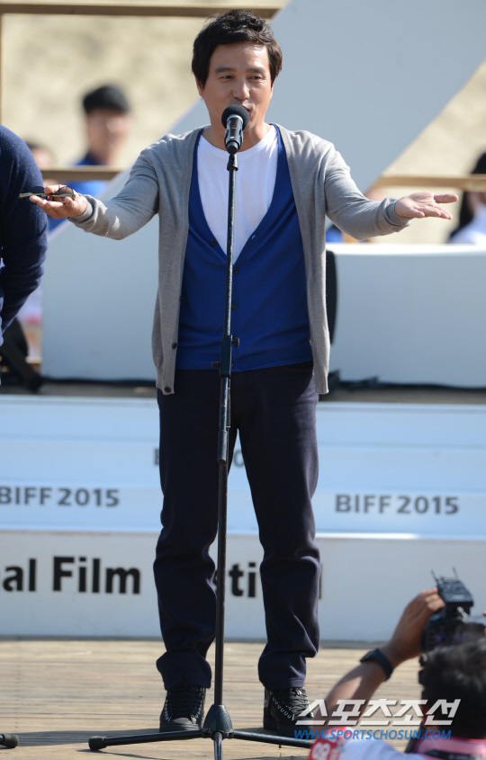 배우 조재현이 3일 부산 해운대 비프빌리지에서 진행된 영화 '나홀로 휴가' 무대인사에 참석해 인사를 하고 있다. 조재현의 감독 데뷔작