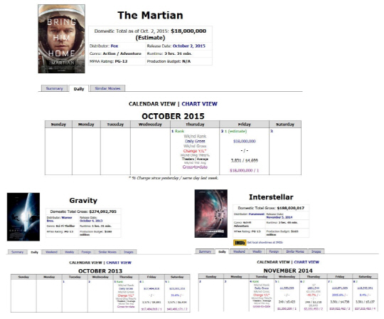 박스오피스 모조에 따르면 '마션'이 지난 2일(현지시각) 북미에서 개봉해 약 1800만 달러(약 213억원)의 수익을 거뒀다. 이 오프닝 기록은 '인터스텔라'의 1687만 달러(약 200억원)와 '그래비티'의 1740만 달러(약 206억원) 기록을 훌쩍 뛰어넘는다.