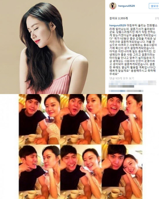 한편 한그루는 열애 사실을 SNS를 통해 직접 알리는가 하면, 결혼 소식이 보도되자 직접 이 사실을 알렸다. 4일 한그루는 자신의 인스타그램에 "아침부터 울리는 전화벨소리에 일어났는데. 결혼기사가 올라왔더군요. 당황스러웠지만 제가 직접 전하는게 맞는거겠다 싶어 글을 올리게 되었습니다"라고 운을 뗐다.