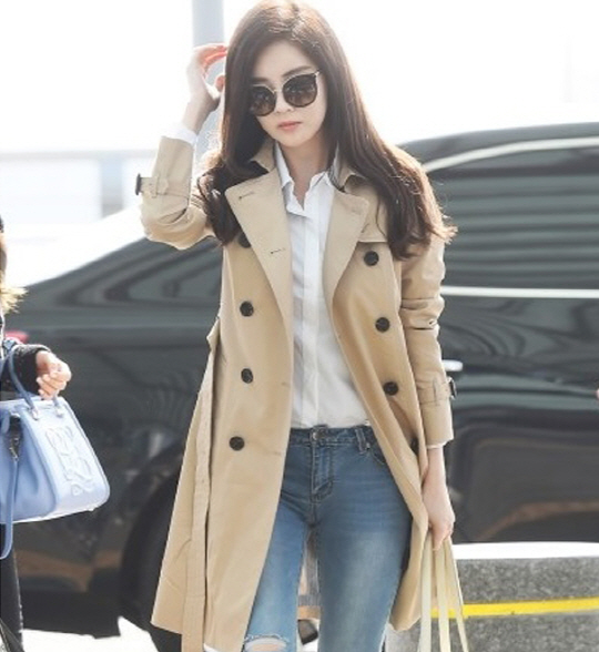 강소라의 클래식한 트렌치코트 장소와 계절에 구애받지 않는 클래식함이 포인트인 강소라의 트렌치코트입니다. 몸의 실루엣을 따라 그대로 핏되는 점이 섹시하면서도 도시적인 매력 포인트죠, 그녀처럼 선글라스와 함께라면 차가운 도시의 가을여자 느낌 내기 어렵지 않아요. 버버리의 제품입니다.