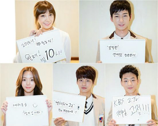 사진 속에는 "2015년 10월 5일 월요일 밤 10시, 발칙한 열여덟 청춘들이, 여러분을 찾아갑니다! '발칙하게 고고' 많이 봐주실꺼죠~? KBS 2TV 채널 고정!"이라는 하나의 메시지로 이어지는 문장들을 적은 다섯 배우들의 모습이 담겨 있어 이목을 집중시킨다.