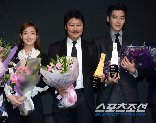 배우 송강호, 김우빈, 김고은이 5일 부산 벡스코에서 열린 아시안 캐스팅 마켓에 참석해 트로피와 함께 포즈를 취하고 있다. 젊고 유망한 배우일 뿐만 아니라 향후 가치가 더욱 주목되는 별들의 잔치인 '캐스팅보드'에서 한국은 김우빈과 김고은, 중국 조우정과 장용용, 일본 사토 타케루와 나가사와 마사미가 선정됐다. 올해로 20주년을 맞는 부산국제영화제는 월드 프리미어 94편, 인터내셔널 프리미어 27편, 뉴 커런츠 부문 12편의 영화가 선보이며 10월 1일부터 10일까지 부산 영화의 전당을 비롯해 부산 일대 극장에서 열린다. 부산=허상욱 기자 wook@sportschosun.com/2015.10.05/